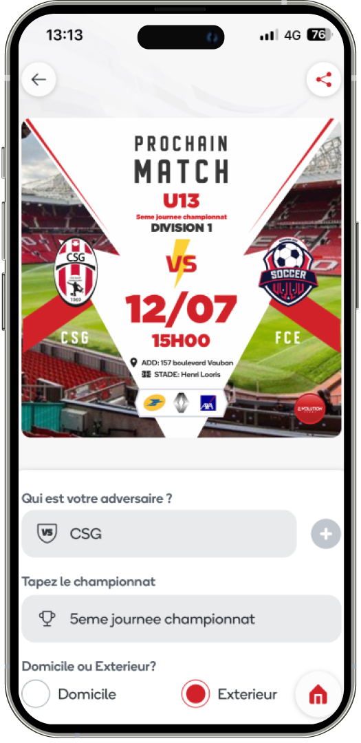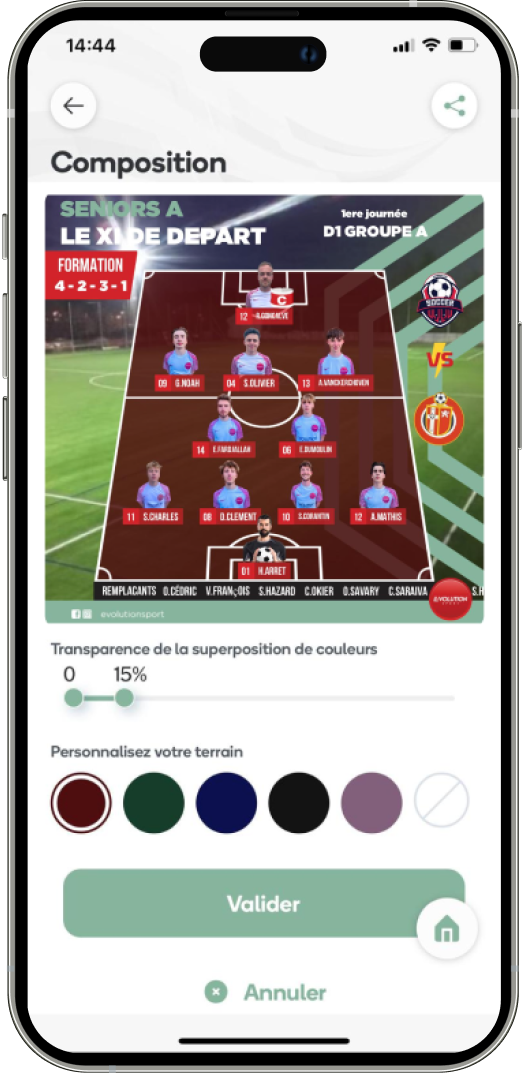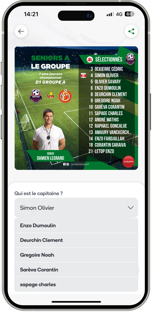 Il pourra valider ses présences aux matchs et aux entrainements en 1 clic
