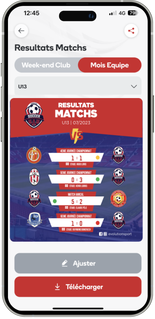 - Chaque licencié auras accès à toutes les informations et événements de votre club